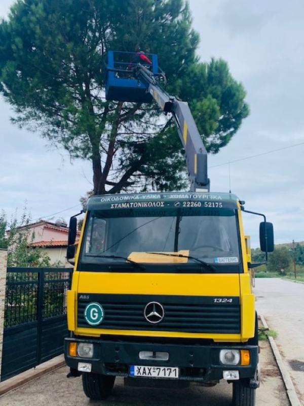 Αναλαμβάνουμε εργασίες με καλαθοφόρο όχημα, όπως το κλάδεμα δέντρων, μεταφορές βαρέων αντικειμένων, ανυψώσεις οικοδομικών υλικών και οποιαδήποτε ανύψωση θέλετε να πραγματοποιήσετε.